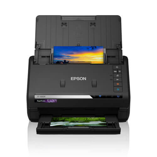 Epson FastFoto FF-680W הוא סורק Wi-Fi מהיר עם מזין אוטומטי לסריקת תמונות ומסמכים. תומך בשיפור תמונות אוטומטי ושיתוף ישיר לענן, עם אפשרות לסרוק עד 30 תמונות ב-30 שניות.